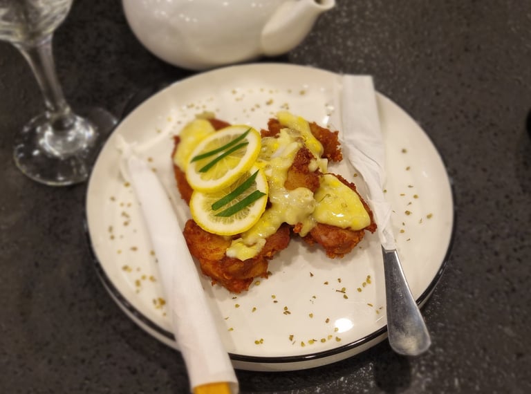 Ayam Goreng dengan bumbu racikan chef Three Little Dragons di padukan dengan saus tar-tar.
